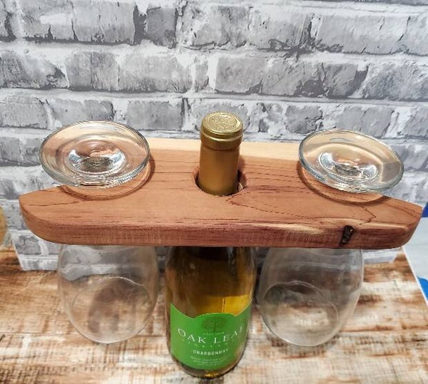 Wine Caddy holds 2 wine glasses with your favorite wine, wine and glasses not included